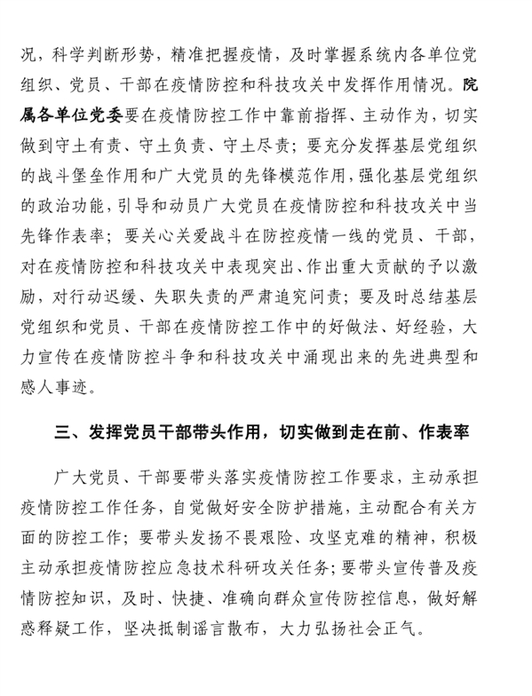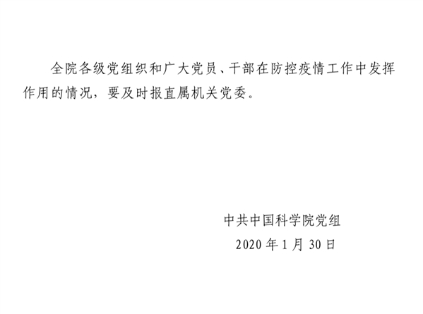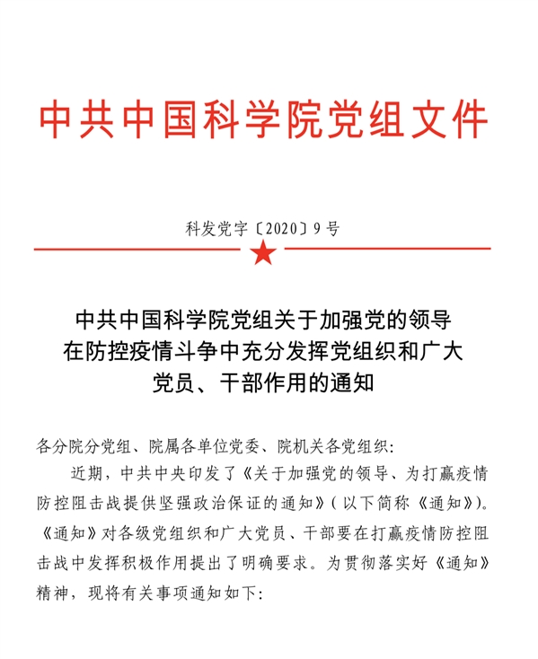 【中国科学院党组】中科院要求党员干部疫情防控要勇于担当作为