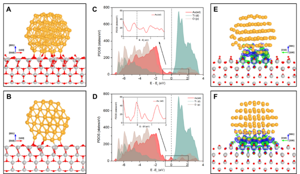 图1.Au-TiO2界面的原子结构和电子结构(图片来源于Science)