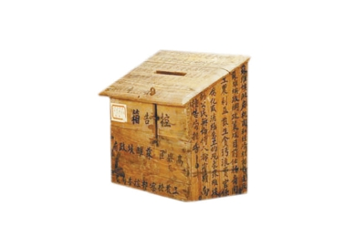 1931年11月,中华苏维埃共和国临时中央政府在江西瑞金成立,毛泽东当选为政府主席。临时中央政府下设多个部门,中央工农检察部控告局便是其中之一。同年,工农检察部控告局将这个机关自制的举报箱,挂了出来。