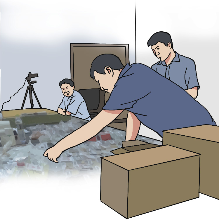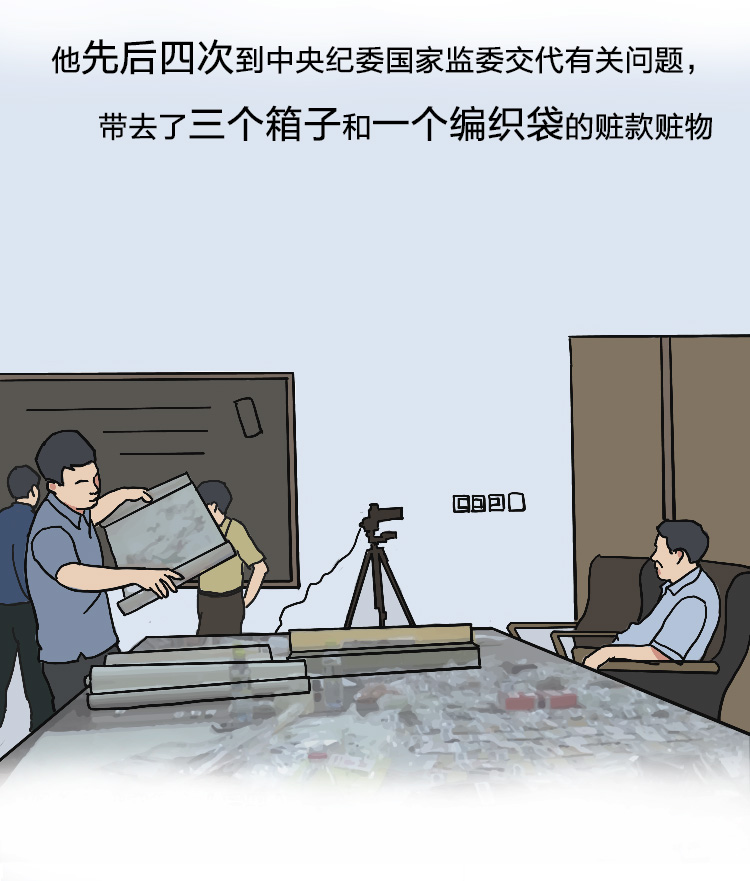 他来交代问题 带了三个箱子和一个编织袋