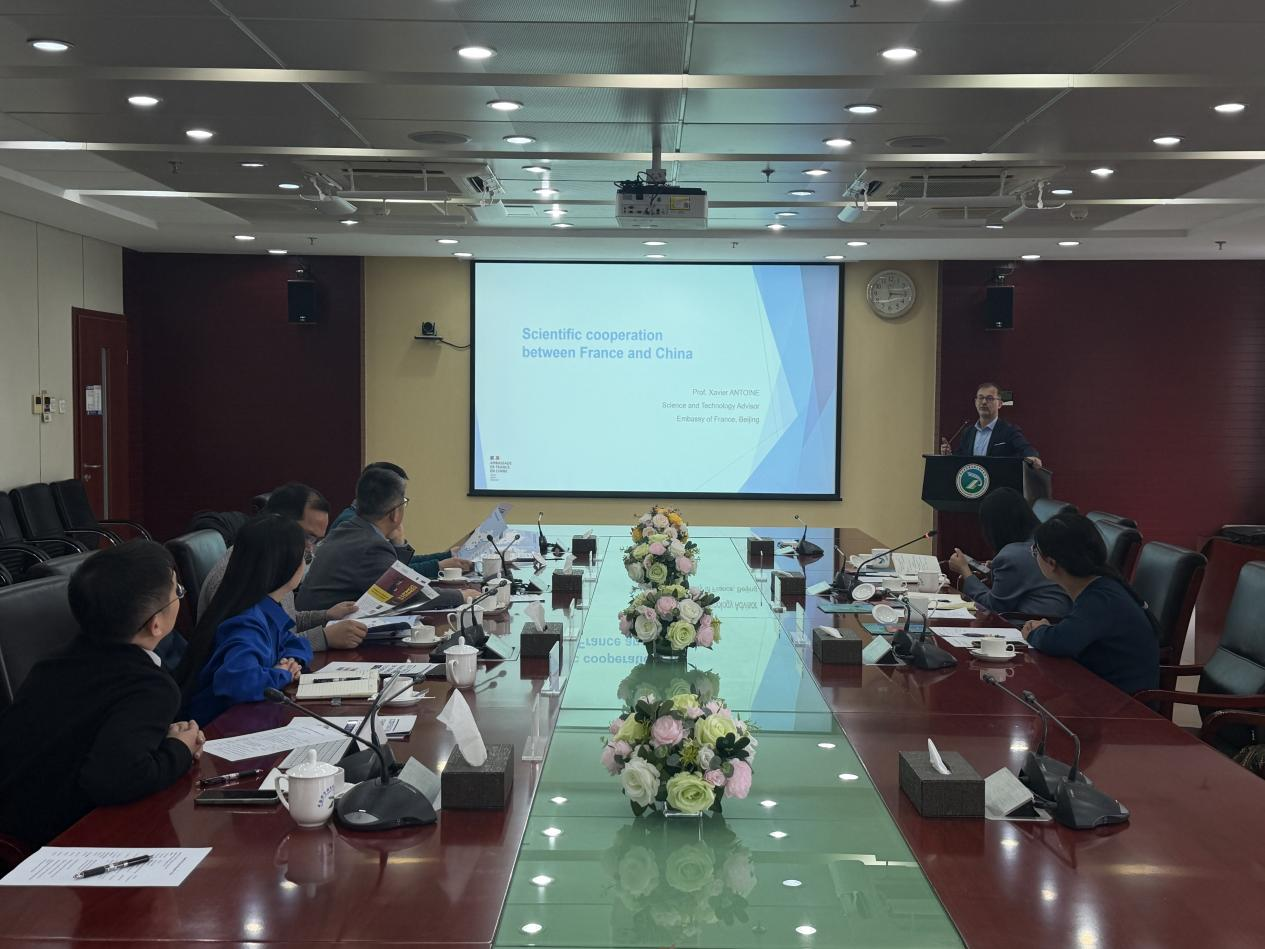 12月19日,法国驻华使馆科技顾问Xavier ANTOINE、科技项目官员徐文静及科技助理张澜一行访问U9彩票。U9彩票副所长李春山参加并主持交流活动,相关科研骨干代表参会。