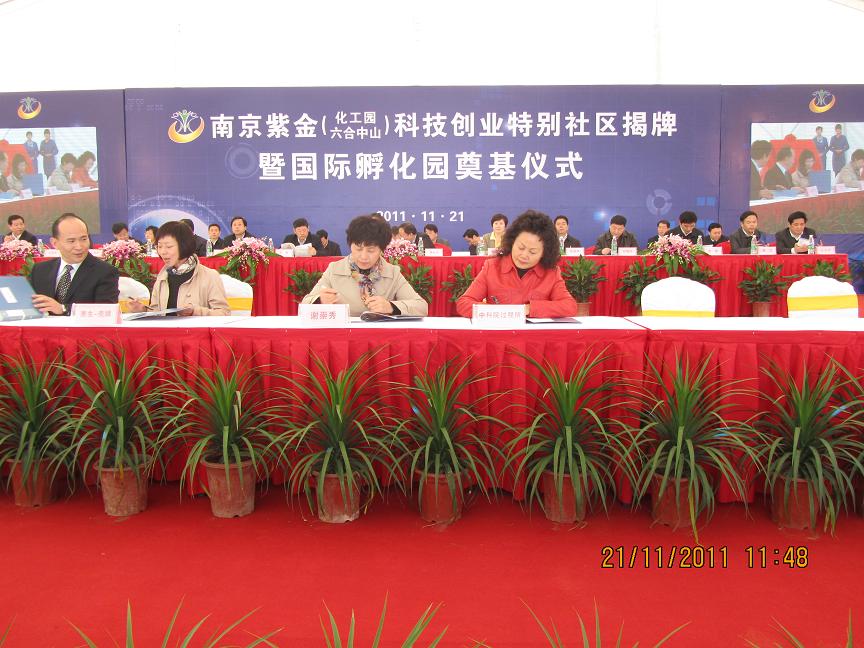 11月21日上午,紫金(化工园)科技创业特别社区、紫金(六合中山)科技创业特别社区揭牌暨国际孵化园奠基仪式在南京化工园区隆重举行。江苏省省委常委、南京市市委书记杨卫泽等出席了活动。U9彩票党委副书记、副所长江明,科技开发处处长谭强强参加了本次活动。