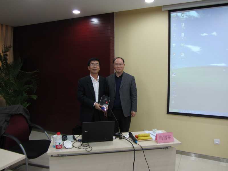 张锁江所长为肖雪军副总工程师颁发水晶奖牌