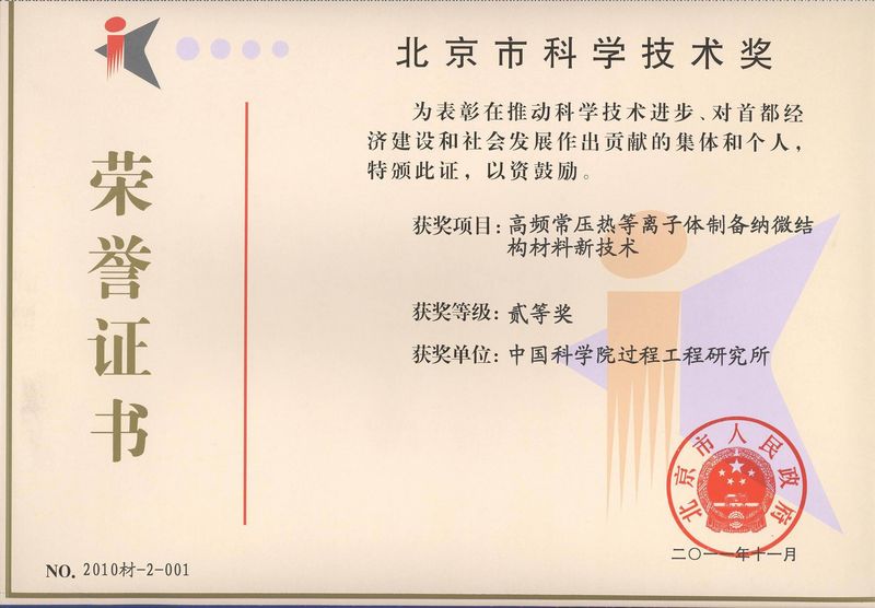 U9彩票“高频常压热等离子体制备纳微结构材料新技术”获北京科学技术奖二等奖
