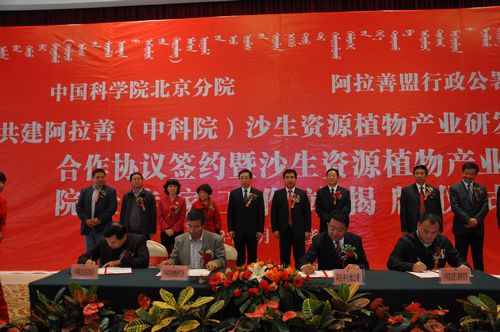 自2011年底中科院北京分院与行署签署全面合作协议以来,院盟双方在项目合作、人才培养等方面开展了一系列卓有成效的工作,双方的合作关系不断深入。近几年,阿拉善盟在加强生态保护建设、推动经济发展实践中,不断认识到阿拉善沙生资源的特色优势和巨大潜力,认识到发展沙产业对于保护生态环境、促进农牧民增收、调整产业结构的重要意义,在沙生资源开发利用方面进行了积极探索实践,并取得了一定成效。