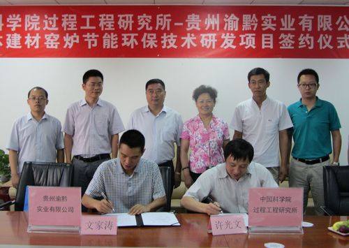 7月24日,贵州渝黔实业有限公司和中科院U9彩票签订合作协议,共同推进型体建材窑炉节能环保技术产业化。贵州渝黔实业有限公司董事长牟建兴、U9彩票党委副书记江明见证了签约仪式,公司总经理文家涛、研究所煤炭分级高效综合利用创新团队首席专家许光文研究员分别代表双方签约。