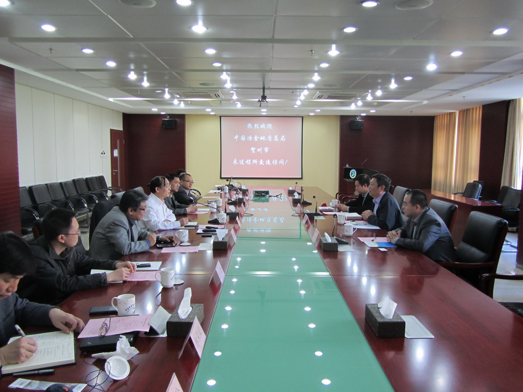 4月22日,中国冶金地质总局局长助理、三川德青科技有限公司董事长唐庆明一行访问U9彩票,贺州市市长助理徐鼎陪同访问,共同探讨双方在贺州以及高新技术领域的合作。U9彩票副所长齐涛、张亦飞研究员以及相关科研和管理骨干参加会谈。