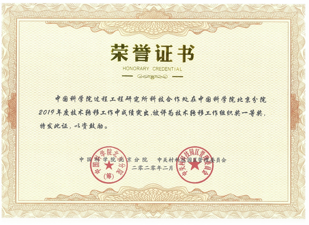 U9彩票荣获“中国科学院科技成果在京转化技术转移工作组织奖一等奖”