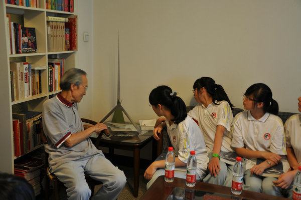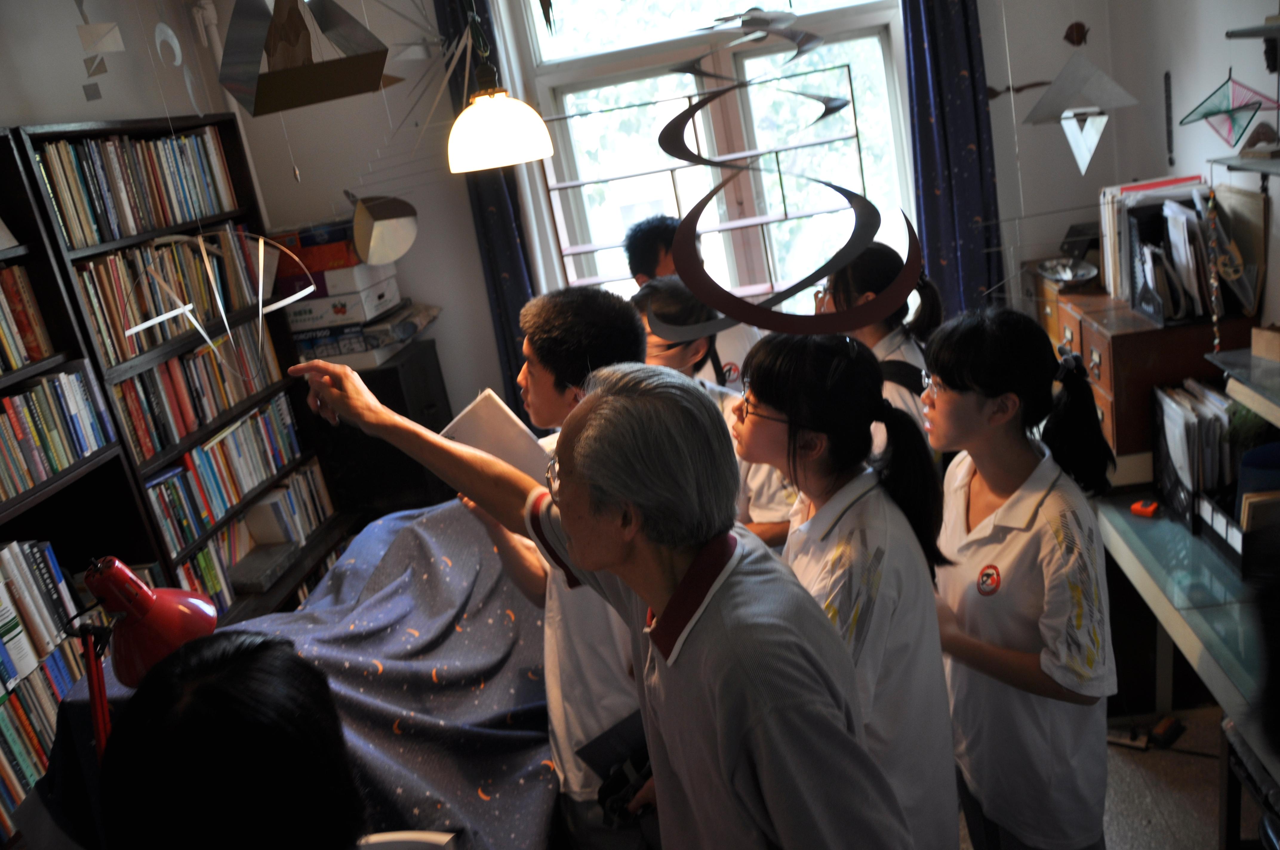 7月13日,北京市第二中学郭慕孙院士“几何动艺”实验室的15名高一学员和3名老师在中科院天地生科学文化传播中心袁志宁副主任带领下,在郭慕孙院士家里上了实验室正式建立以来第一堂科学与艺术课。