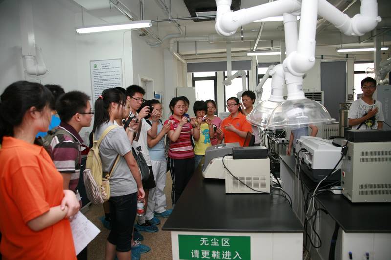 报告结束之后,在志愿者的引导下,大家参观了多相复杂系统国家重点实验室、院绿色过程与工程实验室和湿法冶金清洁生产技术国家工程实验室。学生们通过参观高效能超级计算机和国际“虚拟过程工程”平台,接触到世界前沿科技的研究领域。在院绿色过程与工程实验室,磁性离子液体、电池组装及充放电展示引起了学生们极大的兴趣,大家纷纷踊跃提问,亲自动手参与实践。通过科研人员的讲解,大家清楚的了解到什么是清洁生产技术,认识到资源利用对于社会的重要贡献。