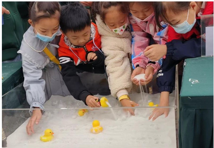 没有一滴水,却可以像水一样,让小鸭子在里面尽情嬉戏!当科研人员将流化床教具内的气路打开后,床内的颗粒在气压/气流的作用下,会像开水般“咕嘟咕嘟”冒泡,使小黄鸭在“浮力”作用下“弹跳”、“嬉戏”起来。