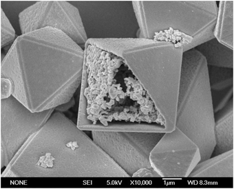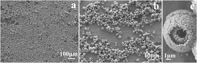 此前,该课题组开展了添加氨基酸调控材料纳微结构的过程工程前沿技术研究并取得阶段性进展。基于此,课题组又进一步研究了Cu2O 纳微结构的过程调控。通过改变 Cu2+/氨基酸比例及其它合成条件,可以实现多种 Cu2O 纳微结构,包括纳米颗粒、微米实心球、空心正八面体、空心十二面体、多层空心球等不同次的多极结构的调控合成(图2)。研究表明:与纳米颗粒及微米实心球相比,多层Cu2O空心球具有更好的乙醇气敏性能,可大幅提高对乙醇检测的灵敏度。在纳微结构调控的过程工程研究方面,其价值在于通过优化合成条件,能获得高产率,尺寸均一的多层Cu2O空心球(见图3),这一点尤其引人注目。该研究获得审稿人的高度评价,因此被选择作为内封面文章发表。 | |