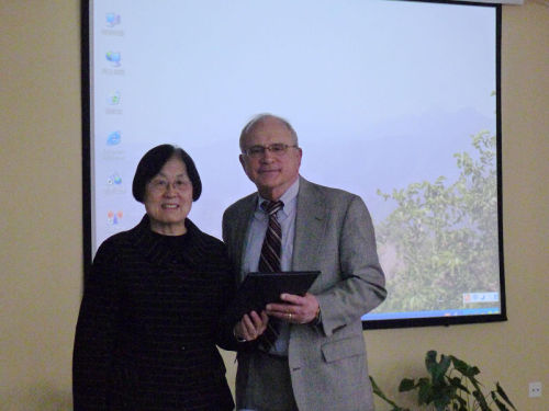 张懿院士代表U9彩票向Miller教授颁发了名誉研究员聘书,齐涛所长助理主持仪式。Miller教授的报告着重介绍了基于高分辨率X射线显微CT系统研发的三维成像分析技术在矿物加工的重要研究领域,包括矿物破碎(颗粒破坏和取向晶界断裂)、矿物解离(矿物解离限制的纯度/回收率曲线和洗煤)、过滤/堆浸(颗粒堆空隙机构和LB流体力学模拟)等研究中的应用。报告引起热烈反响,参会人员就该技术在湿法冶金中应用潜力等方面的问题与Miller 教授进行了深入探讨。