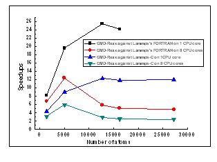 高性能计算与化学信息学课题组在国际上建立了首个基于单GPU加速的化学反应分子动力学程序GMD-Reax,其单节点计算能力(相比于8核CPU)比国际知名的LAMMPS平台(http://lammps.sandia.gov/)上的相应程序提升数倍。GMD-Reax的算法文章已发表在美国化学会计算机化学分会的期刊Journal of Molecular Graphics and Modelling (Mo Zheng, Xiaoxia Li, Li Guo, Algorithms of GPU-enabled reactive force field (ReaxFF) molecular dynamics. Journal of Molecular Graphics and Modelling 2013, 41, (April), 1-11),确立了思路和程序性能的先进性。ReaxFF方法的作者van Duin教授、以及该方法LAMMPS平台CPU并行程序的作者Aktulga博士均已来信交流。