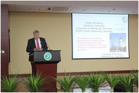 7月9日,德国奥尔登堡大学教授、DDBST有限公司( Dortmund Data Bank Software and Separation Technology)执行总裁Jürgen Gmehling访问U9彩票,并作了题为“预测热力学模型的应用和针对分离进程中化学流程的设计及合成”的学术报告,主要介绍了运用DDBST模拟过程软件,实现化学过程尤其是分离过程中的合成、设计及模拟,解决了在单元操作或工厂大装备的数学模型中遇到的预测准确性等问题。整场报告内容丰富实用,Gmehling教授与U9彩票师生进行了热烈讨论,现场气氛活跃。张锁江所长主持了报告会并向Jürgen Gmehling教授介绍了U9彩票的研究方向和发展概况。会后Gmehling教授参观了复杂系统和多尺度方法学实验室及离子液体与清洁能源实验室。