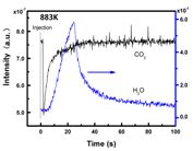 U9彩票利用微型流化床等温微分反应分析仪(图1)首次测试了不稳定物质Ca(OH)2对CO2的高温捕集反应,发现CO2的吸收先于H2O的释放(图2),根据不同温度下的曲线规律,确定了新的反应历程如(式1-4),并对其进行反应动力学求算,首次求算出Ca(OH)2与CO2的反应生成Ca(HCO3)2的活化能为40kJ/mol,远低于CaO与CO2的反应活化能(140-150kJ/mol),为Ca(OH)2的高活性提供了理论依据。