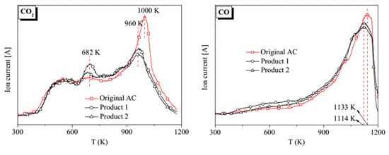 活性炭表面官能团吸附氯苯前后TPD-MS曲线