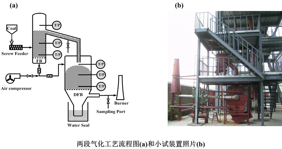 针对我国廉价而丰富的碎煤,中科院过程工程研究所提出了新型的两段气化工艺,该工艺利用解耦思想,将传统的煤气化过程分成煤热解和半焦气化两个子过程,并分别在上游的流化床热解器和下游的下吸式固定床气化炉中进行。由于充分整合了流化床反应器在放大、气-固传质、传热方面的特点和下吸式固定床气化炉高温半焦对焦油催化重整方面的优势,该工艺适合用来处理廉价的低阶碎煤,具有处理量大、放大容易、气体中焦油含量低等优势。