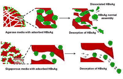 乙肝疫苗在琼脂糖介质和超大孔介质内吸附解吸过程中结构的变化机理