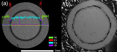 在此基础上,课题组近期再次进行创新。利用Fe-Cu难混溶合金体系的液-液相分离现象,采用课题组特色的无容器气动悬浮技术,使富Fe相和富Cu相在Marangoni对流、Stokes沉积等效应协同作用下自发形成核壳结构,制备出外层Fe包覆Cu的金属相变储热胶囊。同时,通过控制氧分压,使外层Fe原位部分氧化形成氧化层,进一步增强了金属胶囊的耐磨性和实用性。相关成果发表在Applied Energy期刊上(Bingqian Ma, Jianqiang Li, et al. 2014, 132, 568-574, IF=5.261. 论文链接:http://www.sciencedirect.com/science/article/pii /S0306261914007375 )后,很快引起国内外同行的关注,CSIRO、南澳大利亚大学、新加坡UTD的多位学者表示浓厚兴趣,愿意共同推进该类材料在太阳能热利用和工业余热方面的应用。