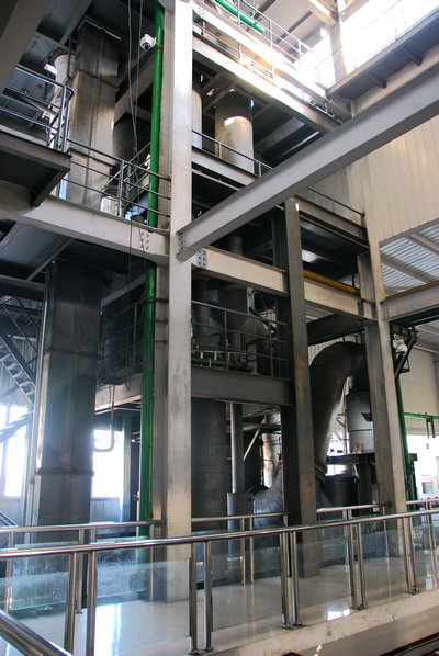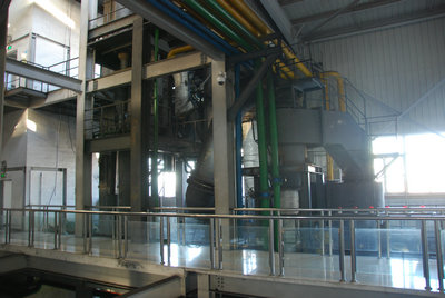 为了实现钒钛磁铁矿精矿中的铁、钒和钛的高效综合利用,我所流态化技术创新团队首次提出了流态化直接还原-电炉熔分-熔分渣富集提钛的工艺技术路线。从2009年开始,该团队对流态化直接还原、流化床反应器放大、还原过程强化等过程进行了一些列基础研究,初步探明了钒钛磁铁矿流态化还原过程的失流规律,建立了流化/失流操作相图,发展了防止失流的有效方法;还开展了熔分钛渣熔析结晶-选矿提质研究,获得了熔析结晶过程物相形成及长大的规律性认识,成功地将熔分渣中二氧化钛的品位从50%提高到72%,钛回收率可达30%。在此基础上,团队与北京中凯宏德科技有限公司合作,进行千吨级流态化直接还原-熔分中试项目,建成了千吨级钒钛磁铁矿直接还原-电炉熔分全流程中试试验线,该线主要由一个鼓泡流化床和两个循环流化床相互串联组成的直接还原系统(见图1,2)和千吨级熔分电炉组成。项目自2013年7月开始工艺设计,2014年3月开始在我所廊坊园区开工建设,14年8月完成安装,截至12月10日该平台已成功实现了7天连续、稳定热态运行,期间共处理原矿近30吨,得到了合作单位的高度评价。该工艺线的后续熔分装置正在紧张调试当中,提钒工段的相关设备也在制备当中。该工艺线所获得的工艺及操作参数将为即将开始设计的60万吨/年示范线提供必要数据。