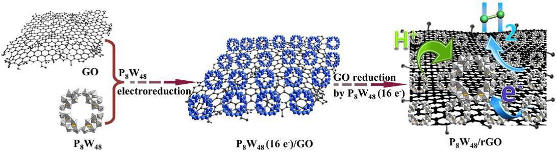 P8W48/rGO复合材料的原位电化学还原制备示意图