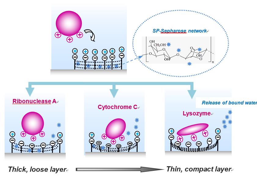 图2 核磁共振技术预测的不同柔性蛋白在琼脂糖介质界面上的微观吸附过程