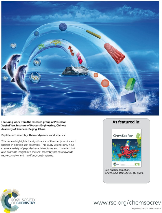 基于该研究团队在肽自组装和功能调控方面的系列研究,英国皇家化学会发表了题为“肽自组装:热力学与动力学”的Critical Review(Chem. Soc. Rev., 2016, 45, 5589–5604),系统评述了肽自组装中热力学和动力学调控的重要性和相关进展,并展望了肽基多尺度分级有序组装和功能调控领域的未来发展方向(图3)。