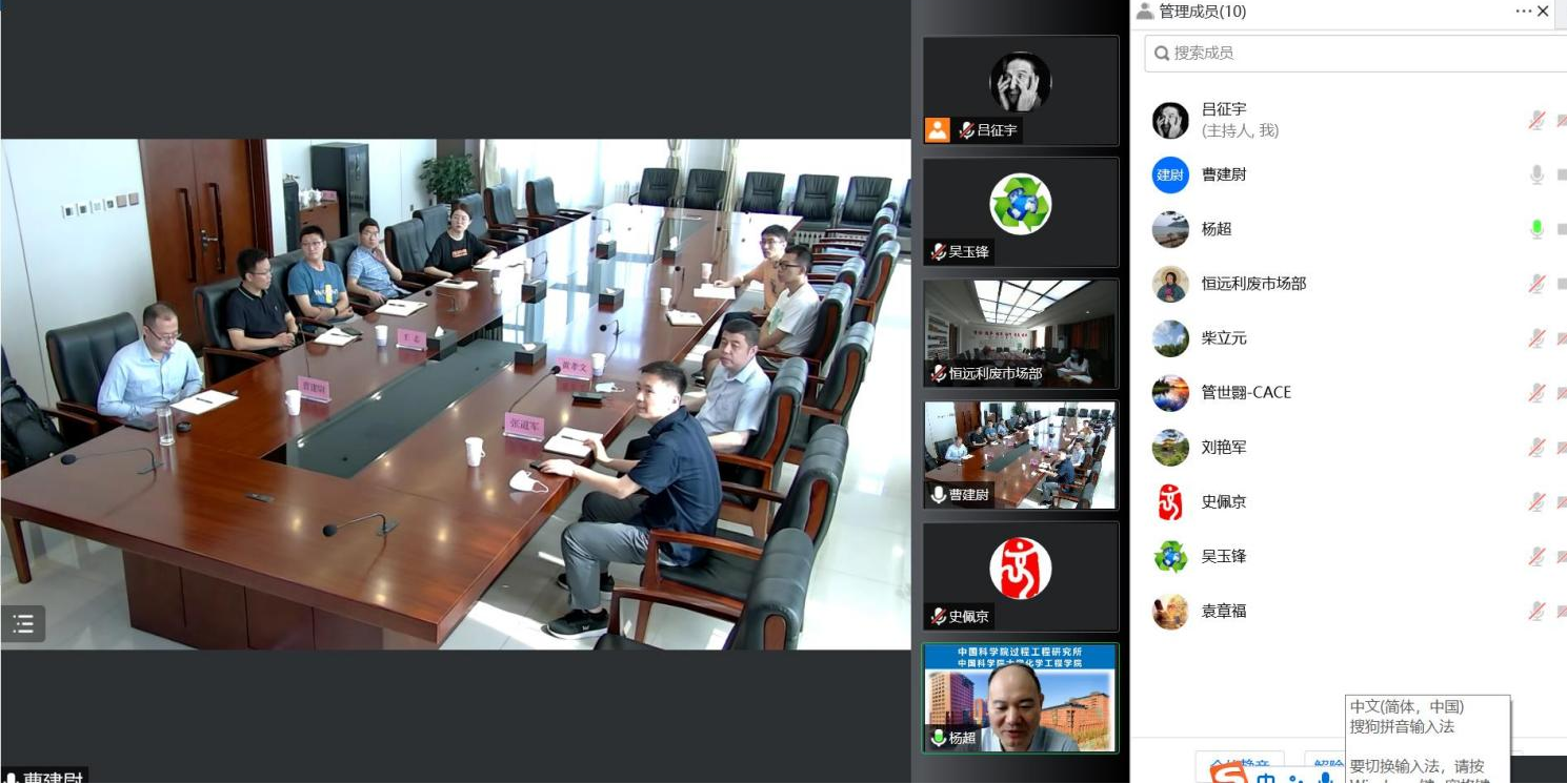 项目科技成果评价会由中国循环经济协会组织召开,U9彩票副所长杨超研究员、资源环境绿色过程工程研究部副主任王志研究员、科技开发处处长黄孝文、以及项目骨干、相关管理部门人员参会,山东恒远利废股份有限公司等项目合作单位领导和项目骨干十余人线上参会。副所长杨超致辞,曹建尉研究员代表项目团队进行了成果汇报和专家质询答辩。