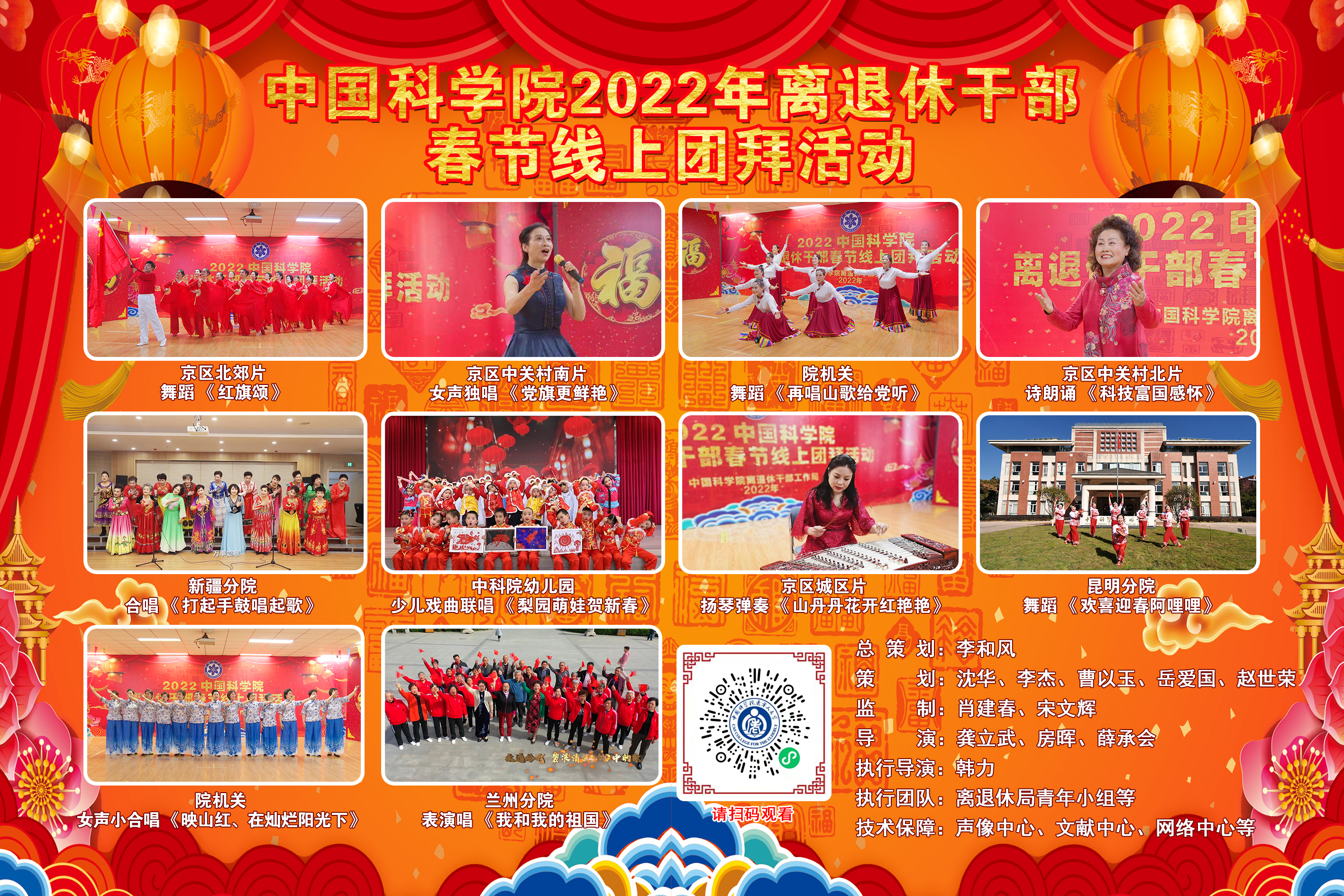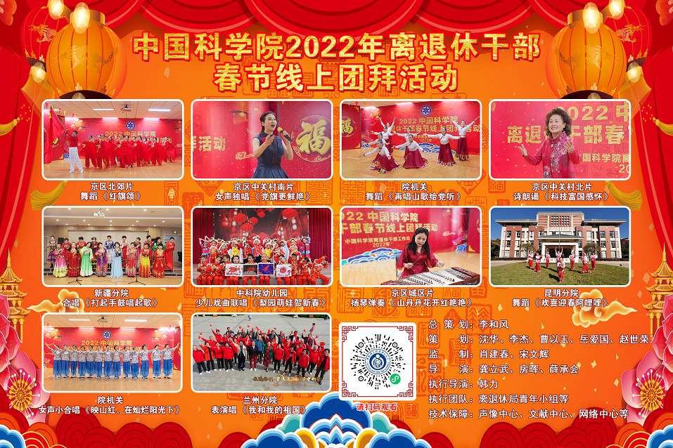 福牛扬鞭辞旧岁,金虎长啸迎春来!在喜迎2022年新春佳节到来的美好时刻,中国科学院离退休干部2022年线上春节团拜活动正式上线了,侯建国院长、阴和俊副书记向全院的广大离退休老同志致以亲切的问候和新春的祝福,全院老同志们也奉献了一场精彩的表演。欢迎大家通过手机识别二维码(见图)或电脑登录网址http://www.lt.cas.cn/ztbd/2022tbh/观看节目。注册“书馨科苑”的用户还可以参与活动点赞抽奖(具体详见活动规则)。