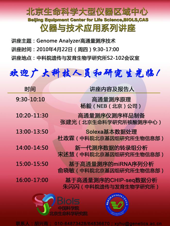 关于生命区域中心举办“仪器与技术应用系列讲座第二讲"的通知