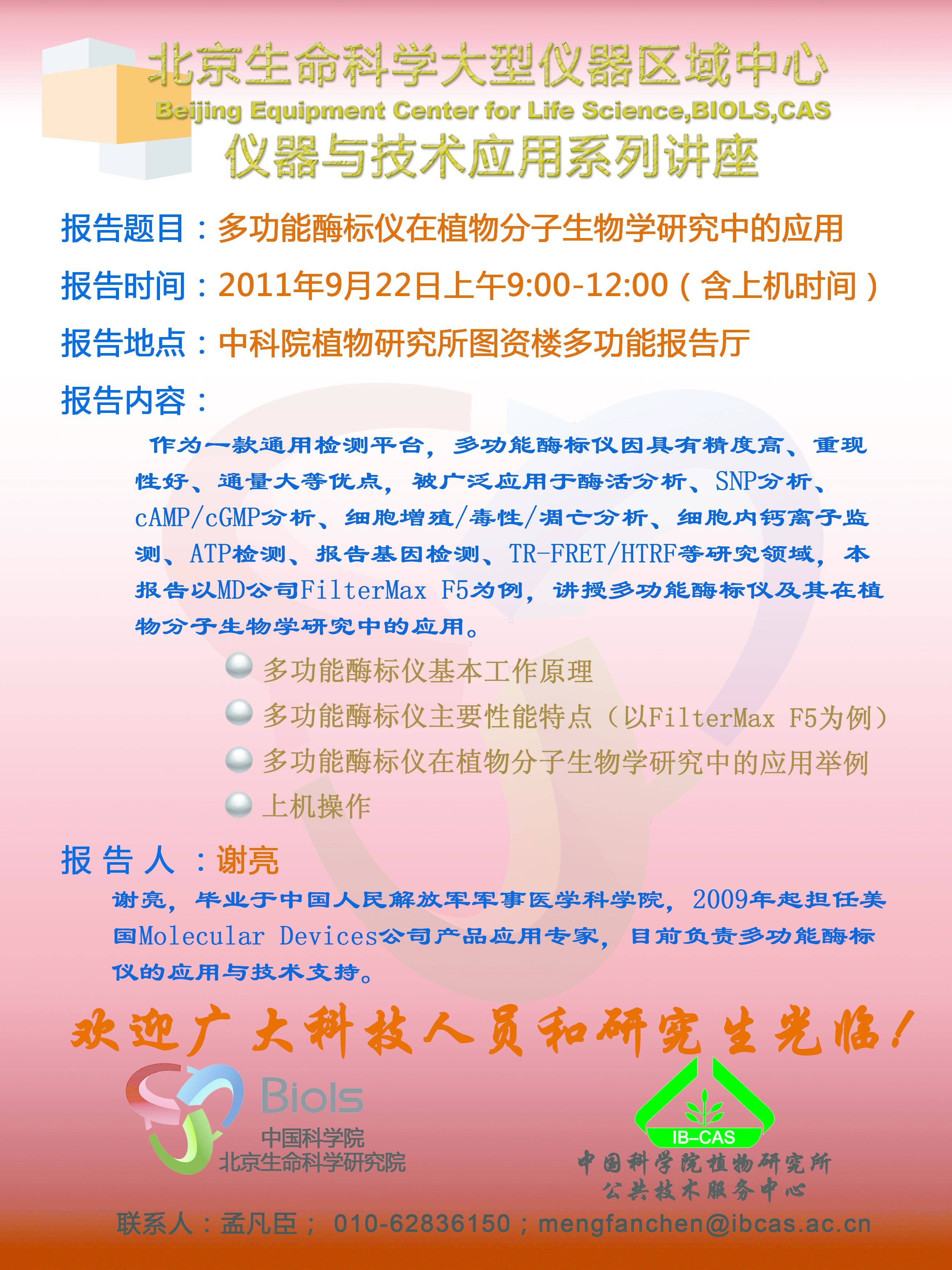 报告地点:中科院植物研究所图资楼多功能报告厅