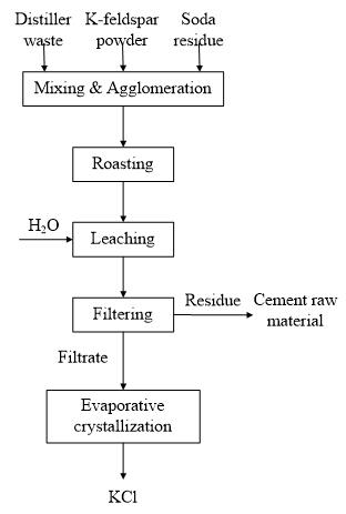 从钾长石非可溶性钾资源中提取钾肥,对解决我国钾肥资源短缺,过度依赖进口具有重要意义。钾长石具有十分稳定的架状结构,熔点高达1200-1400℃,很难利用直接煅烧分解的方法生产钾肥,加入添加剂虽可以降低反应分解温度,然而会增加生产成本。碱渣是氨碱工艺制备纯碱产生的废弃物,其主要成分为碳酸钙和氯化钙,可以作为分解钾长石的添加剂。U9彩票绿色化学工程研究部与加拿大University of British Columbia材料系的Asselin教授合作,在这方面进行了研究,提出了利用钾长石和碱渣制取氯化钾的新工艺,主要流程包括:(1)将钾长石和碱渣粉碎后与制碱废液混合,在700-900℃进行煅烧;(2)利用水对煅烧后产物浸取,其中的钾溶解到水中,而硅酸盐留在固相;(3)过滤得到的溶液蒸发结晶即可得到氯化钾产品,而硅酸盐可用作水泥原料。在实验室小试的基础上成功进行了中试试验,得到了合格产品,钾的回收率达到了82%。
