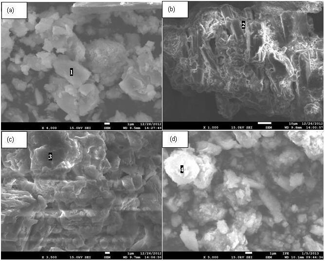 (c)钾长石:CaCl2:CaCO3=1:2:1煅烧产物; (d)钾长石:CaCl2:CaCO3=1:1:3煅烧产物