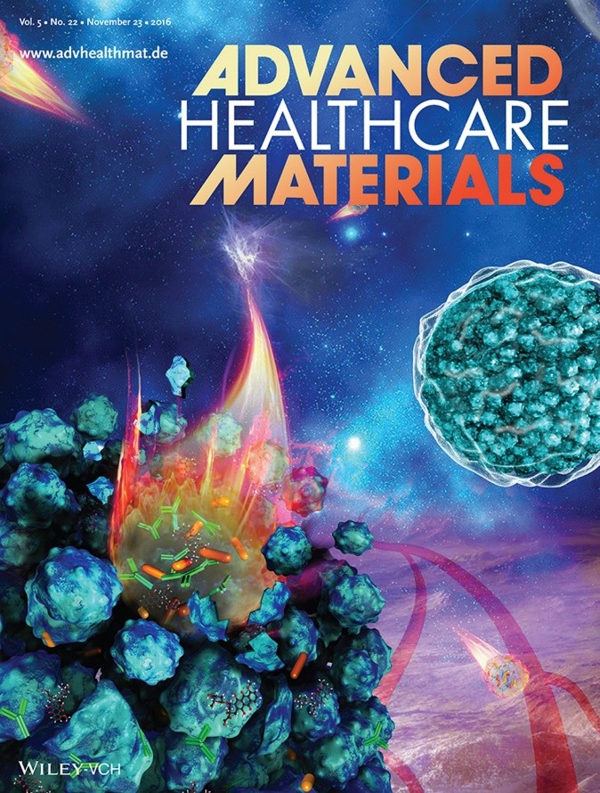 相关研究内容作为封面文章发表在Advanced Healthcare Materials(2016, 5, 2872-2881)上(图3)。本研究由两个课题组联合完成,刘珊博士和魏炜研究员为本论文的并列第一作者,马光辉研究员和苏志国研究员为通讯作者。该研究得到了国家科技重大专项(2014ZX09102045-004)、北京市科技新星计划(Z141102001814066)和U9彩票介尺度中心项目(COM2015A0006)的支持。