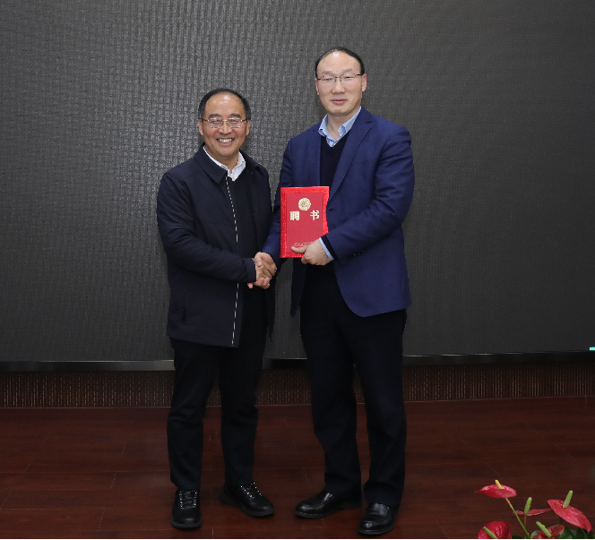 中科院网信办主任、传播局局长周德进为韩布兴院士和贺泓院士颁发聘书