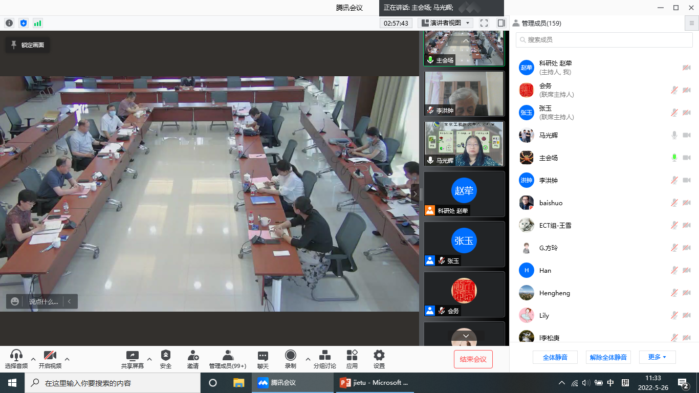 所长张锁江院士发表致辞。他指出,本次会议非常重要,是研究所贯彻落实国家科技体制改革和院工作会议精神,加强科研组织模式创新的重要部署。当初设立研究部的初衷,就是希望通过组建大团队、构建大协作模式,开展重大项目攻关。这次研究部换届,大力启用青年人担当重任,对原有科研布局进行了优化调整。希望通过研讨,一方面大家能够围绕国家重大战略需求,聚焦主责主业,深入思考,实现从“在干什么”“想干什么”向“该干什么”的根本转变。充分发挥以研究部为单元的核心作用,做好科研规划和选题,凝练出研究所的十项重大科技攻关任务,通过加强所层面部署,引进和培养高水平人才,形成团结协作、求真务实、持之以恒的文化氛围,使研究部成为原始创新的发源地,成为重大任务的发起者和承担者,成为高水平人才的聚集地,成为体制机制的创新先锋,最终形成具有标杆性的重大成果产出。另一方面,大家要树立主人翁意识,研究所的发展与每个人息息相关,在当前疫情防控常态化的形势下,积极思考,主动作为,不断创新工作方式,做到科研与防疫“两手抓,两促进,两不误,两确保”,为研究所实现跨越发展探索新的道路。