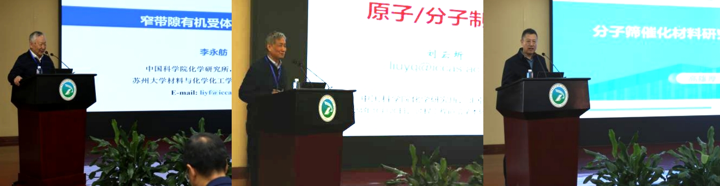 特邀报告环节由中国科学院院士、华东理工大学教授田禾和杨超共同主持。中国科学院院士、中国科学院化学研究所研究员李永舫受邀作大会报告,他以“窄带隙有机受体光伏材料”为题,介绍了我国学者引领的窄带隙有机小分子受体光伏材料、基于小分子受体的聚合物受体和巨分子受体光伏材料、以及钙钛矿/有机叠层太阳能电池的最新研究进展。中国科学院院士、中国科学院化学研究所研究员刘云圻以“原子/分子制造”为题,从探索石墨烯的可控生长及其性能调控讲到新应用开发,从二维框架化合物的发展机遇与研究瓶颈讲到突破创新。中国工程院院士、中国石油兰州石化公司总工程师高雄厚带来了“分子筛催化材料研究与工业化应用”大会报告,他介绍了分子筛、催化裂化对化学工业的推动作用,及其在这一领域做出的创新和实践。与会人员针对报告内容和三位院士进行了深入讨论。