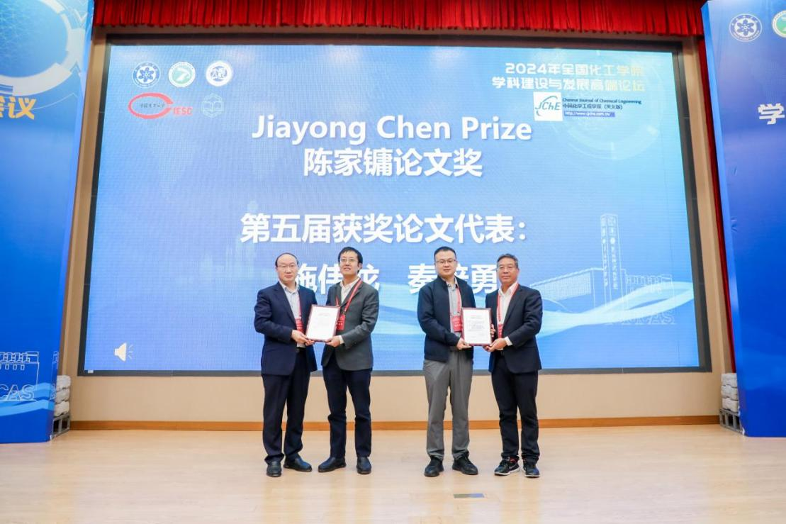 开幕式上,张锁江和徐春明为第五届“陈家镛论文奖”获奖论文代表北京化工大学教授秦培勇与江苏科技大学副教授施伟龙颁发了证书。