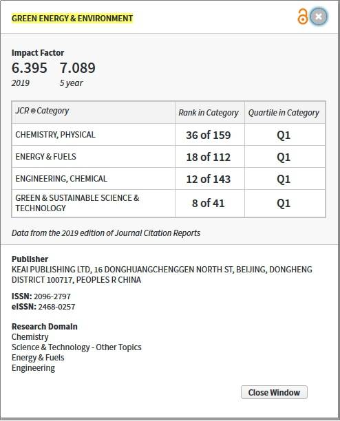 Green Energy & Environment首获影响因子6.395跻身Q1区
