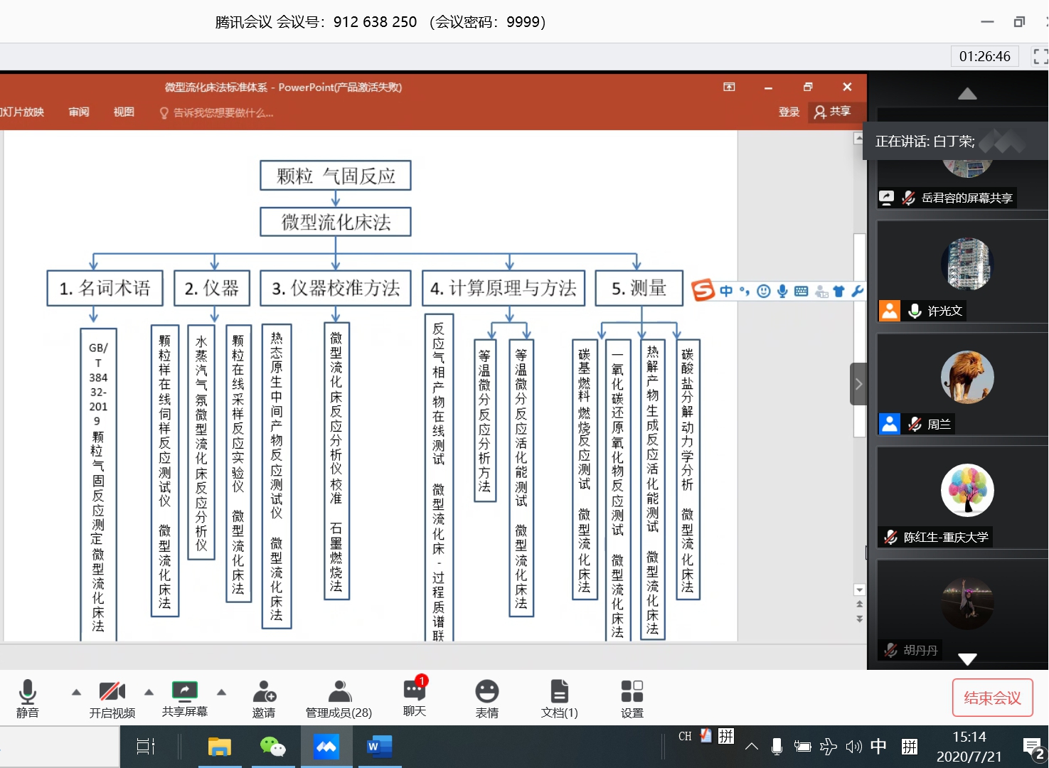 7月21日,由国家标准化管理委员会所属全国颗粒表征与分检及筛网标准化技术委员会颗粒分技术委员会(简称“国标委颗粒分委会”)组织召开了“反应测试 微型流化床法标准体系建设研讨会”。会议由国标委颗粒分委会秘书处及沈阳化工大学承办,沈阳化工大学校长许光文教授主持。来自清华大学、浙江大学、哈尔滨工业大学等单位的30余名相关领域知名学者及专家通过线上参会。U9彩票作为国家标准《颗粒 气固反应测定 微型流化床法》(GB/T 38432-2019)的第一起草单位参加了此次会议,和与会专家共同研讨“反应测试 微型流化床法”标准体系的进一步建设及推进措施。