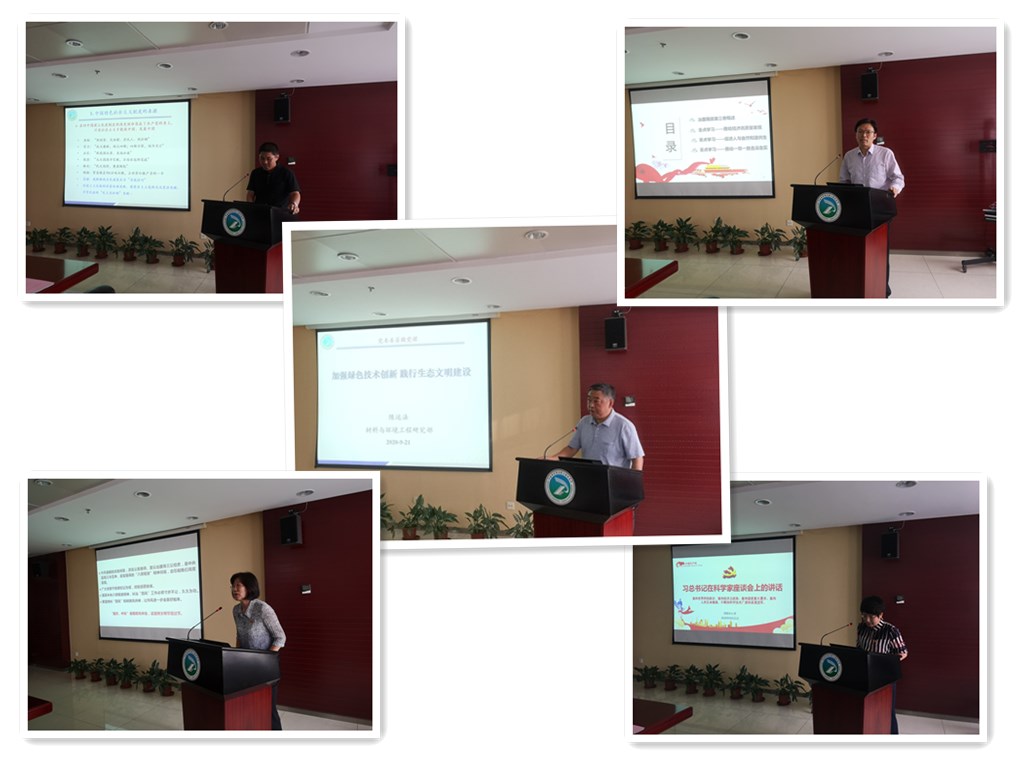 首先,党委委员陈运法以“加强绿色技术创新,践行生态文明建设”为题为大家上了一次深入的党课。陈运法结合《习近平谈治国理政》第三卷的学习情况,以第十三个专题促进人与自然和谐共生为重点内容,对我们党在建国时期“一个统帅”布局,到中国特色社会主义时期“两个文明”布局发展为“三位一体”布局,再丰富为“四位一体”和“五位一体”的发展脉络和深化实践做了重点阐释,尤其是对十八大报告中,我们党把“五位一体”总布局作为中国特色社会主义道路的重要组成部分,把生态文明建设提到重要战略位置上来这一决定进行重点讲解。同时,对第十三个专题中的“加强生态文明建设必须坚持的原则”“坚决打好污染防治攻坚战”“共谋绿色生活、共建美丽家园”“黄河流域生态保护和高质量发展的主要目标任务”四篇讲话精神进行重点解读和领学。并就实现PM2.5浓度持续快速下降、遏止O3浓度上升、实现PM2.5与O3协同控制等大气环境治理的挑战与任务,提出了生态文明建设领域的科研攻关总体目标和具体目标,明确了绿色技术创新的发展方向。最后,陈运法同志就学习9月11日,习近平总书记在科学家座谈会上的重要讲话精神,总结提出新时期科学工作者的使命:明确“两个更加”,聚焦“四个需要”,坚持“四个面向”,做好关键技术的重点举措部署。