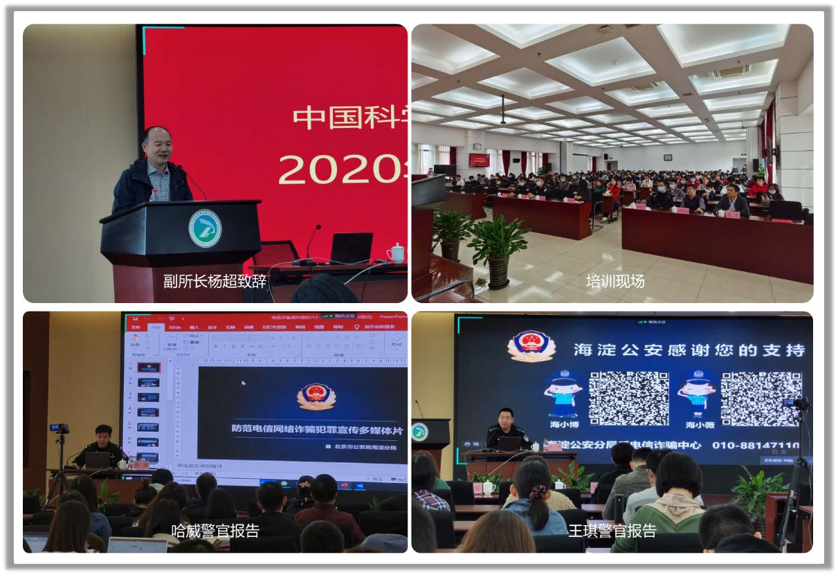 10月14日,U9彩票2020年安全培训顺利举办。此次培训邀请了中关村派出所哈威、王琪、刘长军三位民警做了专题报告。培训由U9彩票副所长杨超研究员主持,研究生、安全员、实验室及管理部门相关人员共计600余人通过现场及视频会议的形式参加培训。
