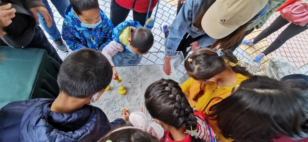 “哇!好神奇!”小朋友们的感叹声此起彼伏。小黄鸭戏球的展示吸引了众多小朋友围观、体验,久久不愿离去。