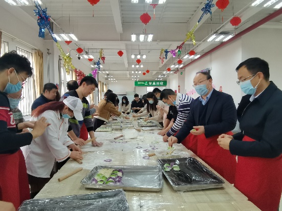 来到食堂时,正遇留守师生在包水饺。所领导兴致盎然地参与到欢乐祥和的包水饺活动中。大家欢声笑语围在一起,分工协作,有人和面,有人拌馅,有人擀皮,有人包饺子,大家相互配合,热火朝天,现场始终洋溢着欢乐的节日气氛。