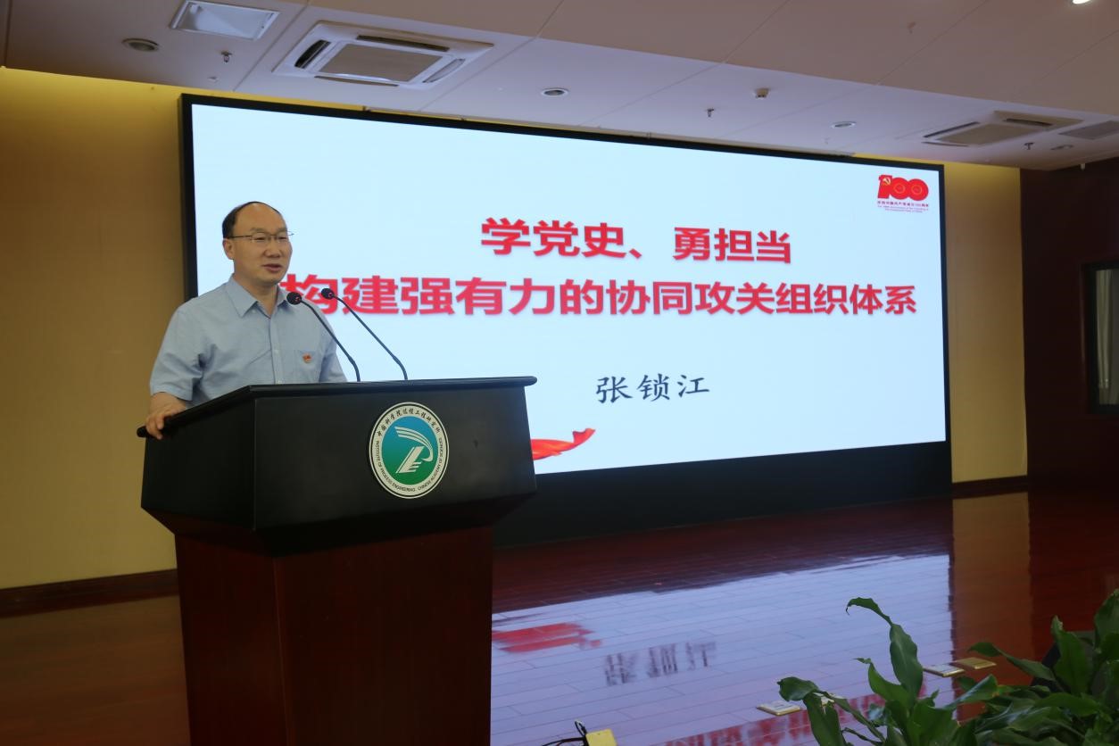 张锁江以《学党史 勇担当 构建强有力的协同攻关组织体系》为题,通过分析中国共产党的初心和使命,以及历经百年历久弥新的原因,提出强有力的组织领导在党和国家发展过程中起到关键作用。张锁江指出,党的十九大以来,党中央坚持把科技创新摆在国家发展全局的核心位置,而碳中和目标的提出为过程工程迎来了历史性重大机遇,因此我们更要加强科研组织管理,坚持问题导向、需求导向、目标导向、原创引领,构建统筹+经费融合发展的新模式,在认真学习党史的基础上,在研究所开展关于解放思想问题的讨论,协同攻关新体制,推动研究所工作再上新台阶。