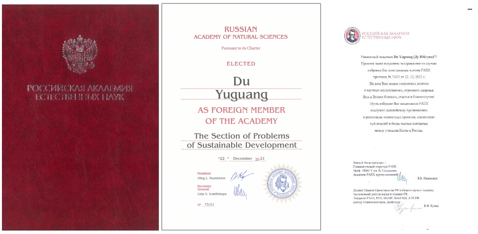 俄罗斯自然科学院外籍院士当选证书及贺信