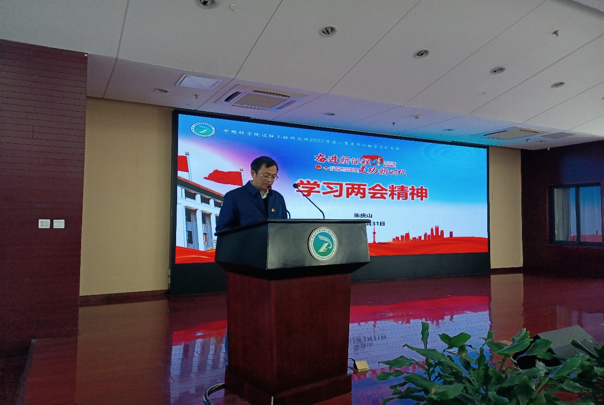 会议伊始,朱庆山就2021年第四季度中心组学习群众意见办理情况进行反馈,并就本次征集到的关于公共设施管理、园区建设、研究生教育、食堂管理、“三八”妇女节活动开展、研究所形象标识产品制作等7条群众意见建议进行答复,安排相应部门负责人认真落实。会上,朱庆山带领大家学习了两会精神,从两会基本概况、2022年政府工作报告、科技创新任务单三个方面展开学习,并强调今年的两会是在全面建设社会主义现代化国家、向第二个百年奋斗目标进军新征程上召开的一次重要会议,全所党员干部要自觉将思想和行动统一到党中央、国务院决策部署上来,深入贯彻落实习近平总书记重要指示批示精神,推动党建工作与科技创新工作融合互促,对标“四个率先”和“两加快一努力”要求,团结一致、奋勇争先,在支撑国家“双碳”目标、加强关键核心技术攻关、解决“卡脖子”技术难题等重大需求上作出应有贡献,以优异的成绩迎接党的二十大胜利召开。