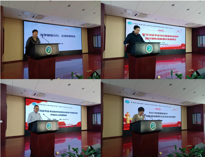 党委委员微党课阶段,党委副书记、纪委书记曹红梅以《深学细悟力行,立足职责担当》为题为大家讲党课。曹红梅认真带领大家学习了习近平总书记在十九届中纪委六中全会上的重要讲话精神以及赵乐际同志会上所做的纪检监察工作报告,重点分析了2022年纪检监察工作任务并对《中华人民共和国监察法实施条例》进行了宣传教育。曹红梅强调,2022年所纪委将认真落实十九届中央纪委六次全会要求,不断增强监督保障执行、促进完善发展的作用,在推进党风廉政建设,压实“一岗双责”责任上下功夫。一是早发现,早防控。加大内部审计的力度和广度,完善风险管理措施,发挥保障作用;二是早提醒,早纠正。加强对主体责任落实情况的监督检查,规范业务行为,严肃党的纪律;三是早教育,早预防。进一步提升教育成效,让弘扬科学家精神与列出负面清单双向发力,使宣传教育更加入脑入心。四是推动落实“放管服”政策。充分运用改革新政策,营造创业环境,激发科研人员创新积极性。