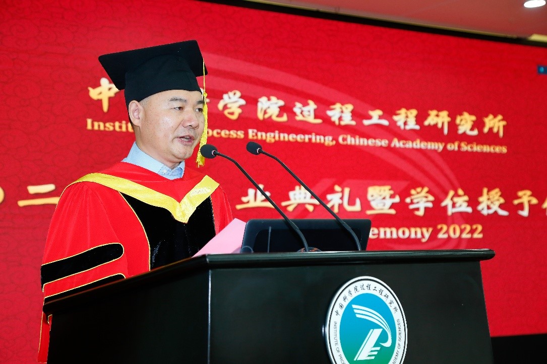 张锁江首先代表研究所全体师生向毕业生们致以最衷心的祝贺。他回顾了这届毕业生疫情之下不寻常的读研历程,勉励全体同学,要“坚定信念,勇担使命,做科技创新的引领者和开拓者;坚守初心,砥砺前行,做科技创新的铺路石和深耕者;坚持奋斗,行稳致远,做科技创新的排头兵和攀登者”。号召同学们积极投身科技创新的伟大事业,做科技创新的引领者和先锋队;始终保持对科研的敬畏之心、好奇之心和谦卑之心;带上乐观豁达的心胸、百折不挠的毅力和强健的体魄为祖国的科研事业不断奋斗!希望同学们能够秉承探索精神、担当精神、奉献精神,以青衿之志,履践致远。今后无论走到哪里,研究所将永远是大家可以依靠的港湾,欢迎大家常回家看看。